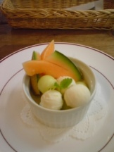 こちらも8月限定のデザート。 『韃靼そば茶のこうばし!!ぷりん』 その名のとおり、口にいれるとこうばしいそば茶のかおりがひろがります♪ 上にのってる白い丸いのは豆腐アイス☆ 多分(笑) メロンもたっぷりで1番味に感動しました!! |